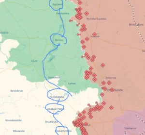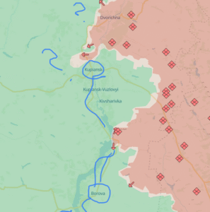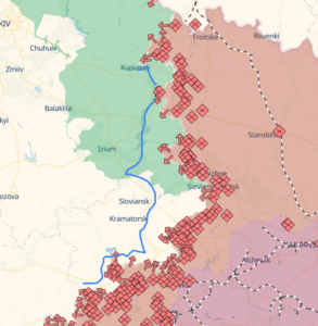 Further south, Russian fores continue to push toward Borova, although note that north of Borova the Oskil waterway has proven a difficult barrier to cross.